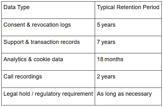 We delete or de‑identify data when it is no longer needed unless a longer retention period is required by law or to defend legal claims.